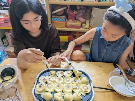 食育 豆をむきむき・・・豆が飛び出て大笑い! ![]() たこ焼きパーティー ![]() 寿司作り |